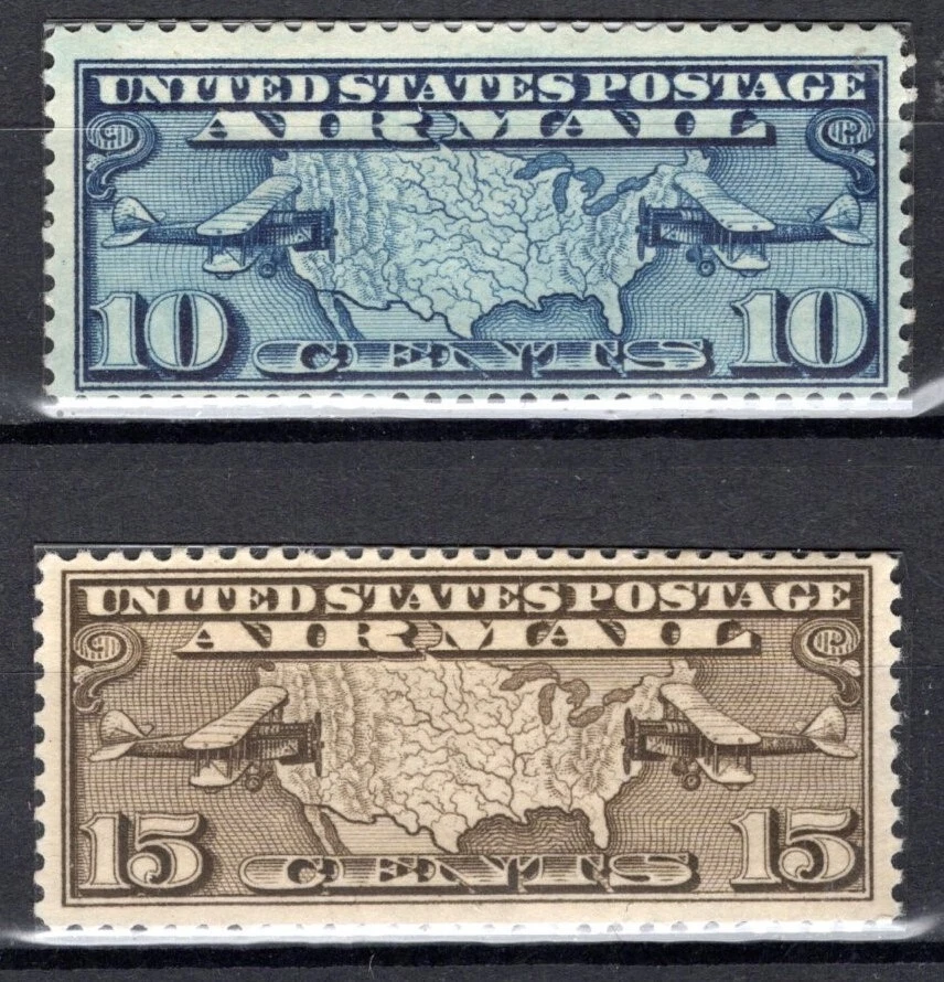 US Stamp Scott #C7 & C8, 10c & 15c, Two Mail Planes & Map, OG, MNH